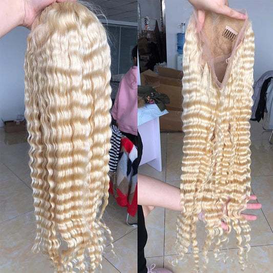 Color#613 blonde human hair lace front wig, pre plucked, deep curly